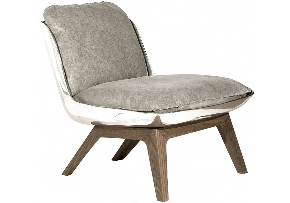 Houston designed by Paola Navone for Baxter is an armchair available in all soft leathers only. Base in brushed walnut-stained ash and 7 mm body in polished cast aluminium. Washed and sterilized goose feather cushions with differentiated density