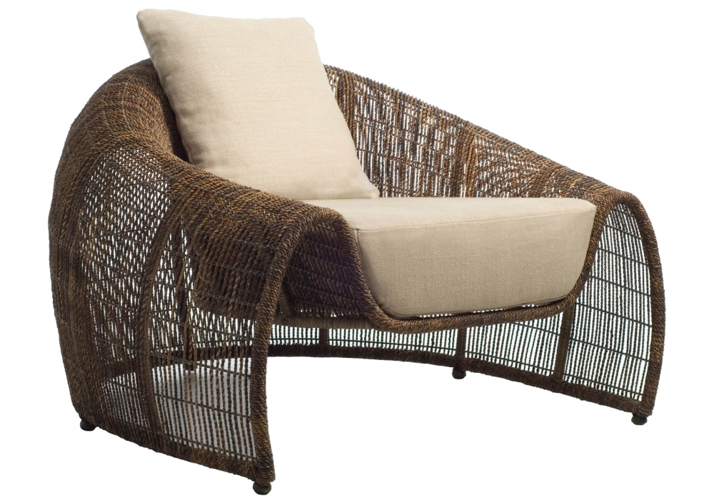 Croissant designed by Kenneth Cobonpue is an indoor armchair made with abaca, nylon, steel. The Croissant collection that is characterized by its crescent shape and distinct central crest, is as ergonomic and visually relaxing, with its gentle slopes that glide down to the arm rests as if to encourage a posture of leisure.