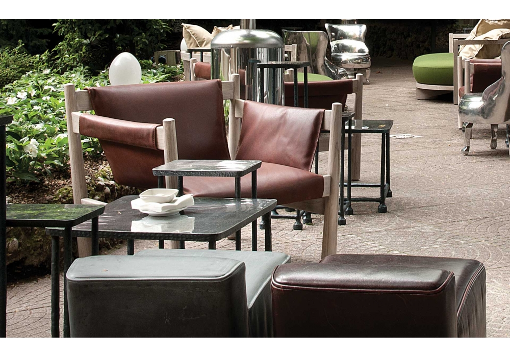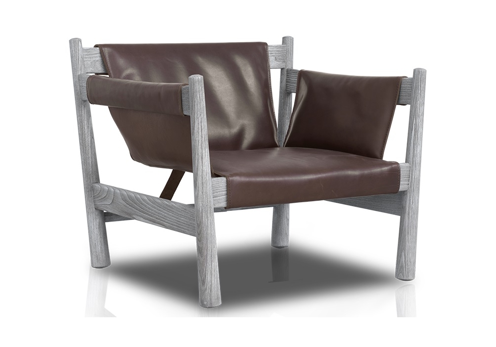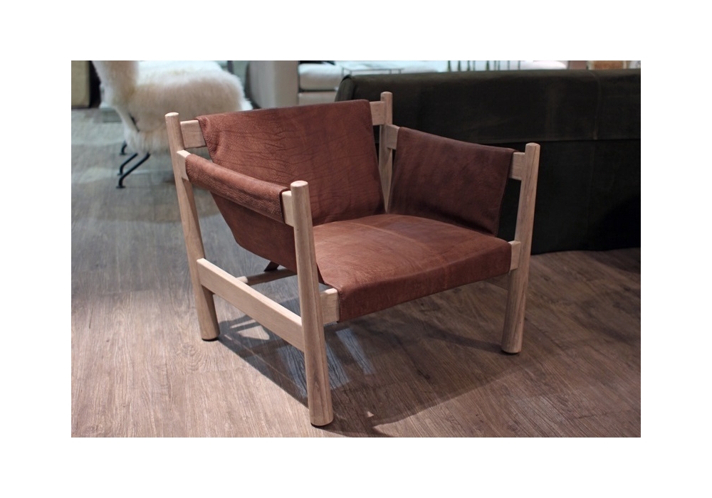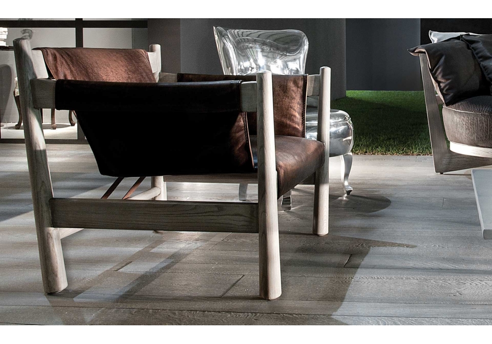 Bolivar designed by Roberto Lazzeroni for Baxter is a beautiful armchair with frame in sand-blasted and aged chestnut. Differentiated density polyurethane foam padding with 100% acrylic fibre polyester. Leather seat structured and supported internally by an ABS panel.