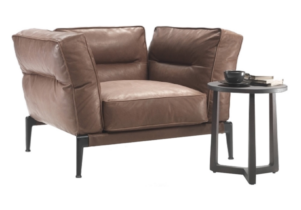 Adda designed by Antonio Citterio for Flexform is a beautiful armchair with metal frame and generously padded cushions in goose feathers bordered by a thick stitching in relief. Removable upholstery in fabric or leather. Metal feet available in different finishes.