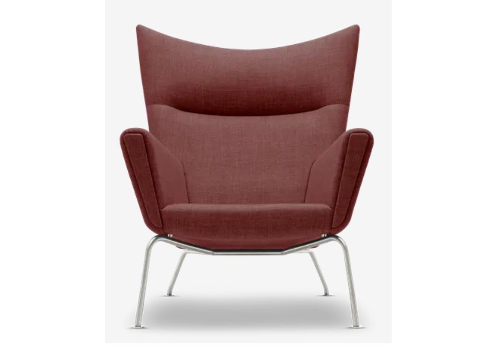 CH445 Wing Chair designed by Hans J. Wegner for Carl Hansen & Søn is an upholstered armchair with solid beech frame and stainless steel legs. Upholstery in fabric or leather.