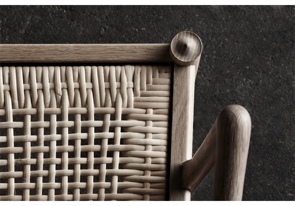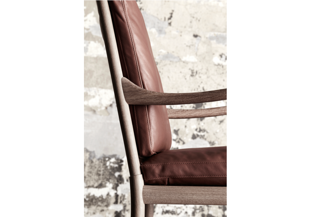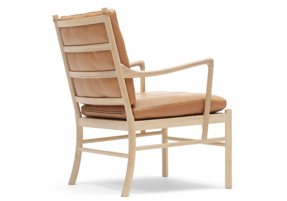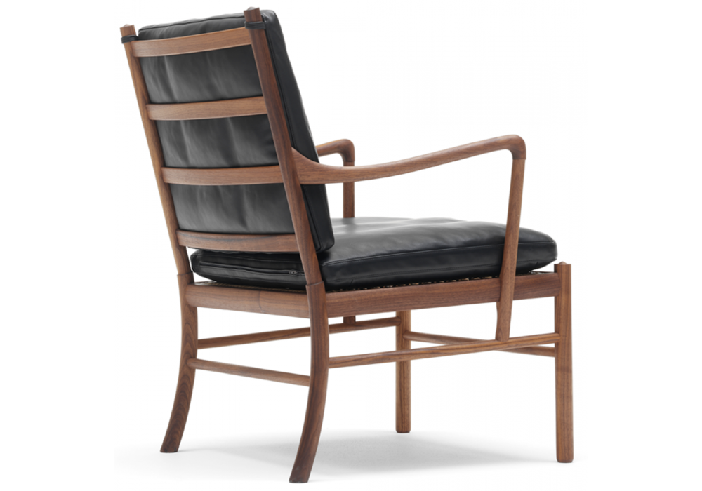 OW149 Colonial Chair designed by Ole Wanscher for Carl Hansen & Søn is an armchair with structure made of solid oak or walnut in different finishes. Upholstered seat and back with fabric or leather upholstery.