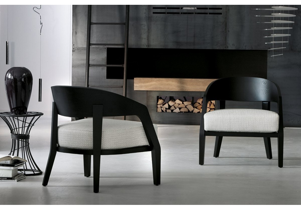 Alba designed by M. Walraven for Porada is an armchair with structure in solid canaletta walnut, ash wood or lacquered matt available in different finishes. Upholstery in fabric or leather.