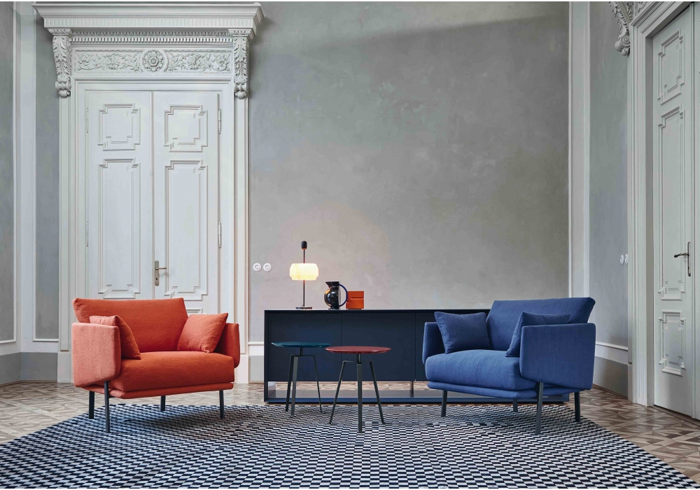 Structure Armchair is an armchair designed by Alain Gilles for Bonaldo. The structure of the armchair is in metal e in wood and the upholstery in fabric or leather. The base is in matt painted metal.