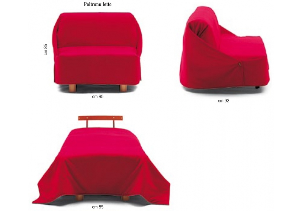 Dadà designed by Campeggi is an armchair-bed with removable cotton cover, filled with padding, ideal for the night and available in different colors. Wooden bed slats and high-density mattress in CFC free foam polyurethane.