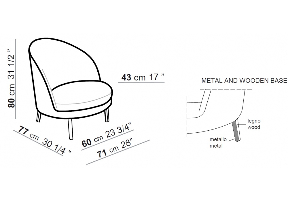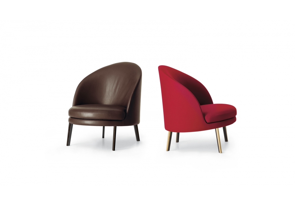 Jules designed by Claesson Koivisto Rune for Arflex is an armchair with a lacquered metal base, padding in molded polyurethane foam / polyester fiber and fabric or leather upholstery. Base also available with wooden profiles.