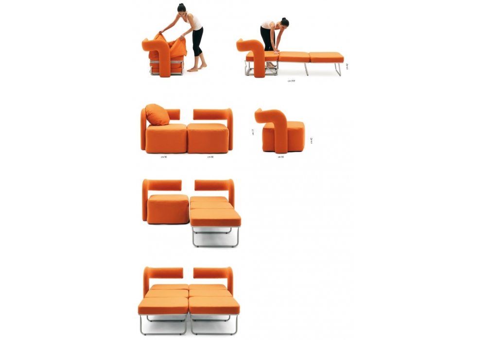 Virgola designed by Giulio Manzoni for Campeggi is an armchair-bed with one arm. Combining two armchairs you can create a little sofa, easily convertible into a queen size bed. Available in 2 version: with left or right armrest.
