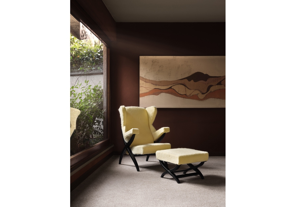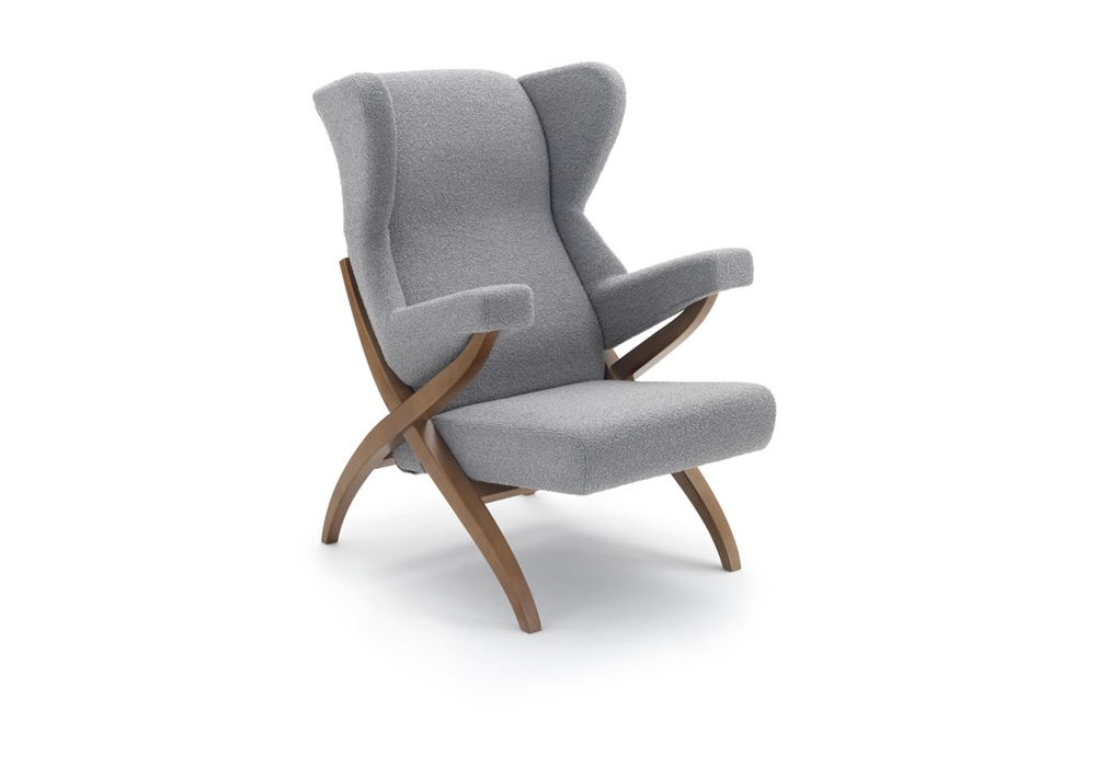 Fiorenza designed by Franco Albini for Arflex is an armchair with structure in solid beechwood,walnut stained or black lacquered. Upholstery in shaped polyurethane with differentiated density. Cover in fabric or leather.