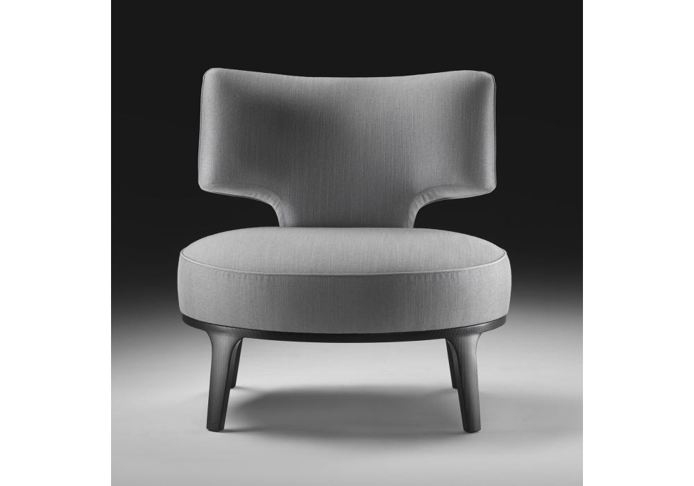 Drop designed by Roberto Lazzeroni for Flexform is an armchair from the Mood collection. Wooden frame and metal backrest. Padding in polyurethane and dacron covered with protective fabric. Base in solid ash wood and upholstered in fabric or non-removable leather, available in different finishes.