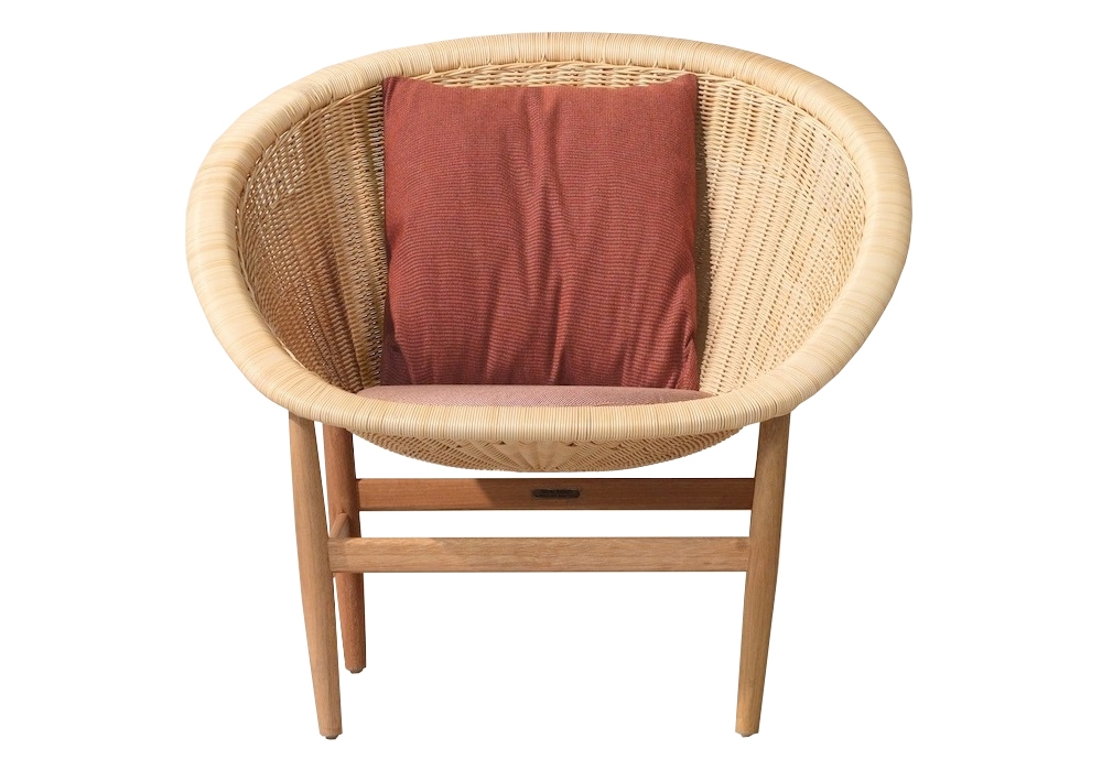 Basket Club designed by Nanna and Jørgen Ditzel for Kettal is an armchair with structure made of oakwood and shell in natural rattan. Seat and backrest cushion available in different fabrics and colours.