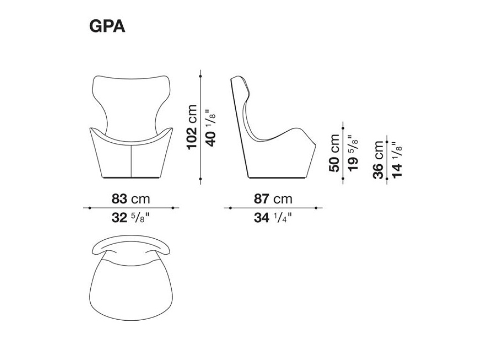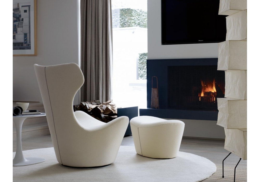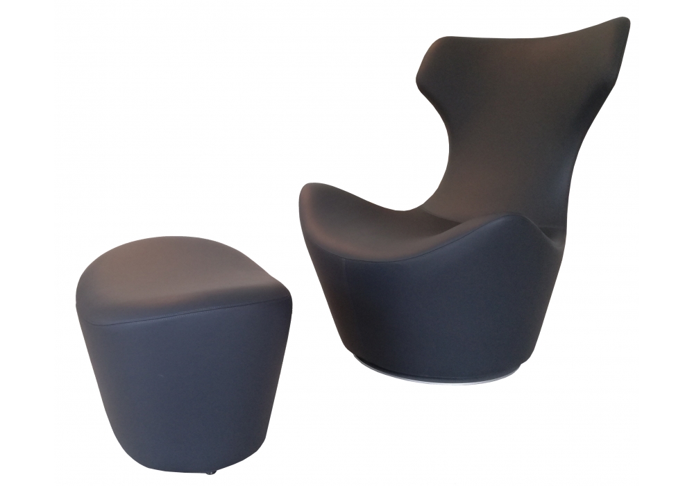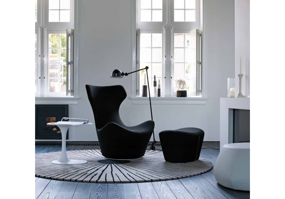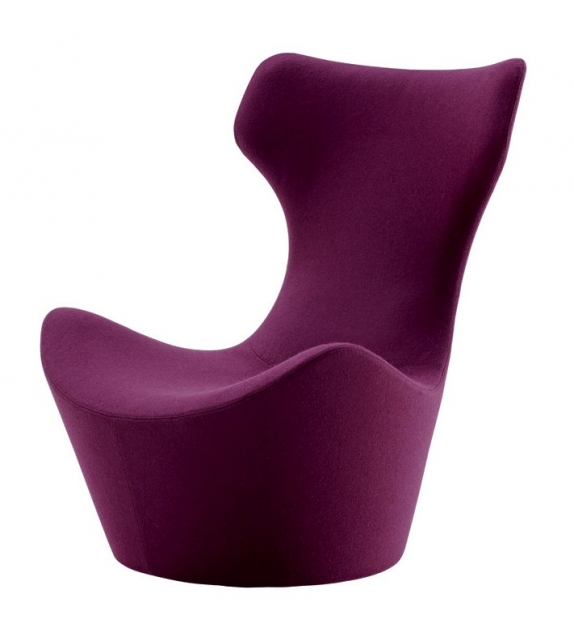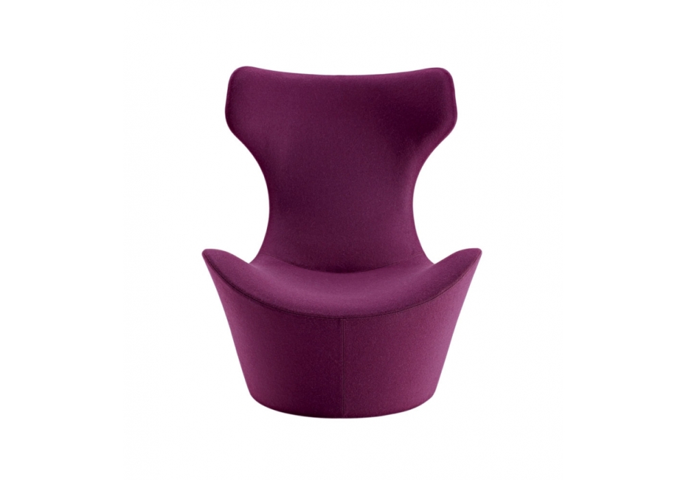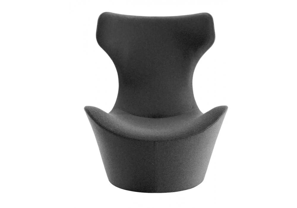 Grande Papilio designed by Naoto Fukasawa for B&B Italia is an armchair with a swivel base in metallic grey painted steel laminate and extruded aluminium. Internal frame in tubular steel and profiles, with internal padding in Bayfit® flexible cold polyurethane foam and polyester fibre lining. External covering in fabric or leather in different finishes.