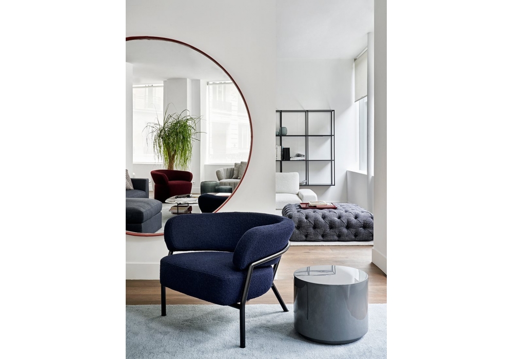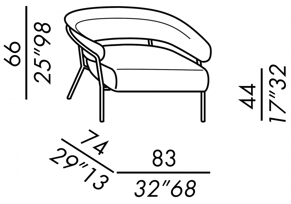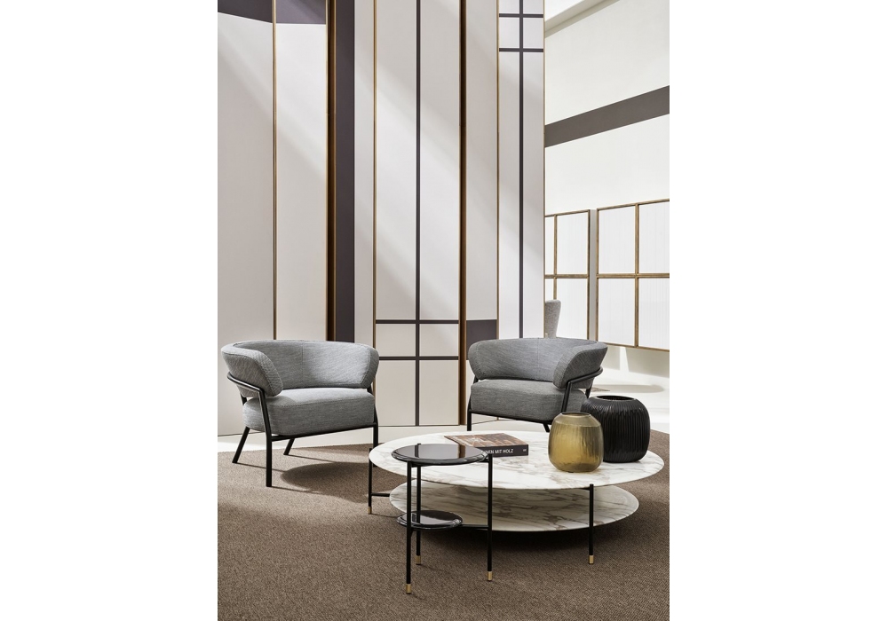 Nanì designed by Andrea Parisio for Meridiani is a armchair with varnished metal structure, padding in polyurethane foam with different densities and polyester fiber and upholstery in fabric or leather.