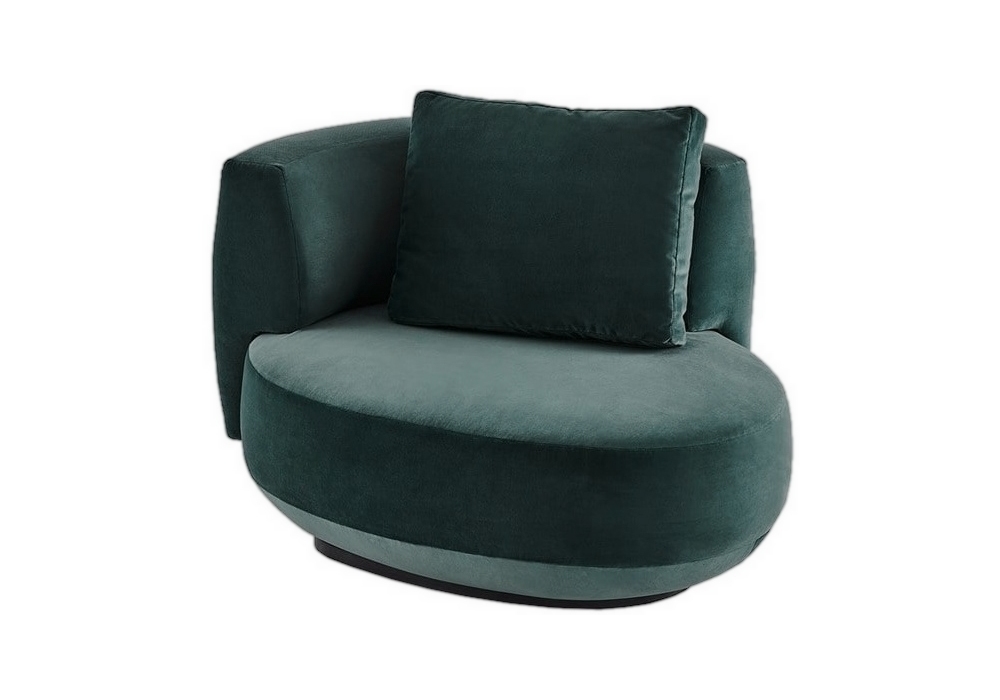 Audrey designed by Massimo Castagna for Gallotti&Radice is a swivel armchair in non-deformable foam polyurethane in different densities and polyester fibre with wooden inside structure. A polyester fibre back cushion included. Black coloured MDF base. Available covered by fabric or leather as per sample. Decorative polyester fibre cushion, on request.