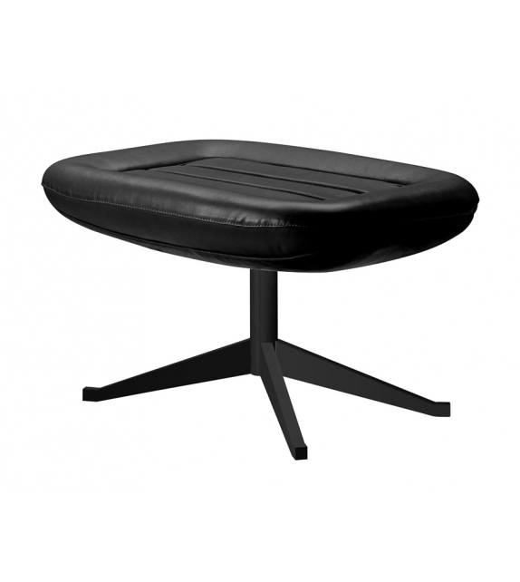 Manzù Lounge 090 designed by Pio Manzù for Alias is an armchair with seat and back shell in compact polyurethane molded together with expanded polyurethane, 5-star base in black die-cast aluminum, upholstered in black leather Pelle Frau.