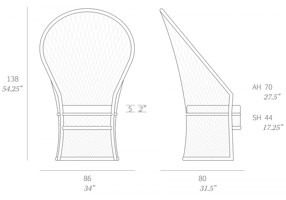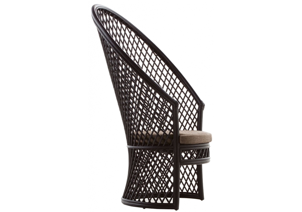 Copa designed by Studio Expormim is an armchair made of rattan with cushion upholstery in fabric or leather. Available in different finishes.