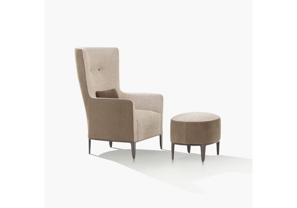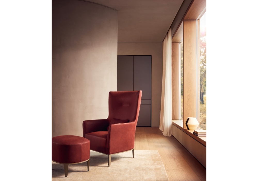 Gentleman Reserved designed by Marcel Wanders for Poliform is an armchair with high backrest, metal base and upholstery available in fabric or leather.