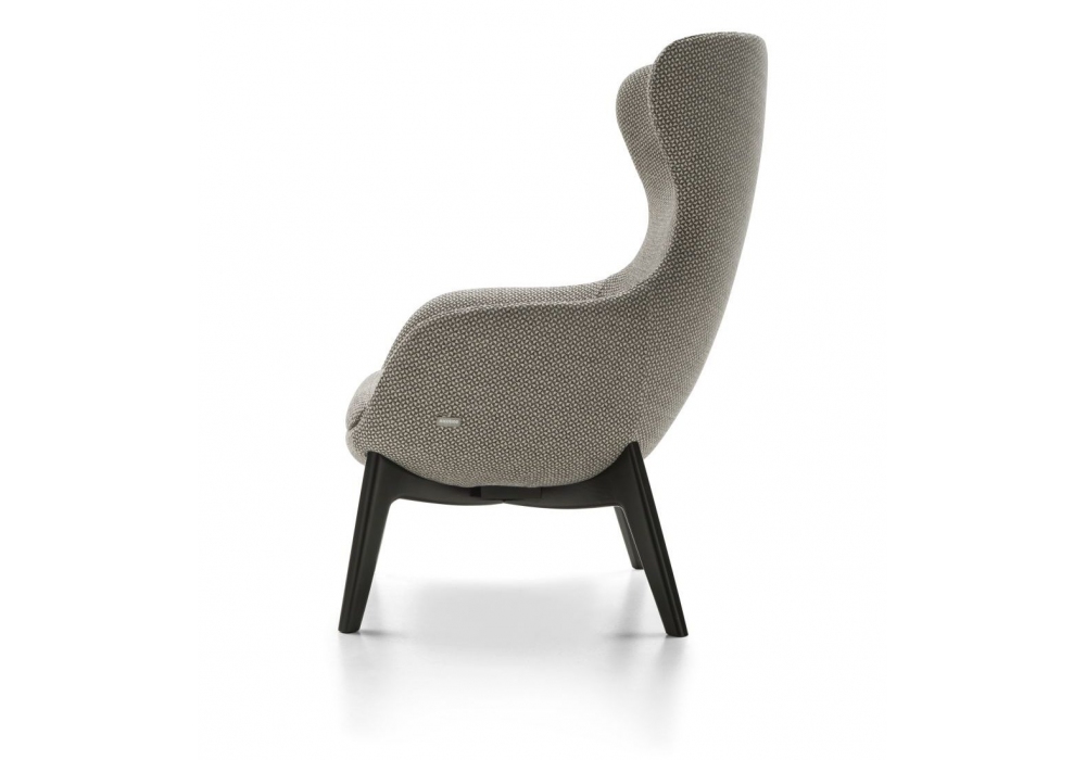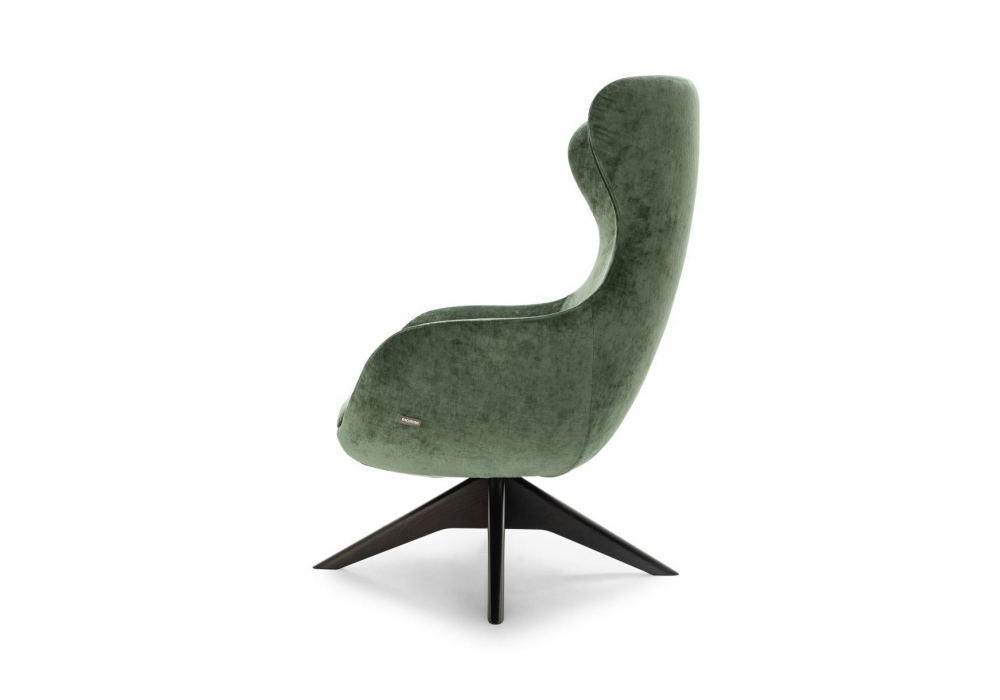 Iseo is an armchair designed for Nicoline. The structure in wood and metal. Padding in cold-foamed polyurethane. Cover in fabric or leather. Available with fixed or swivel base in beech wood painted in three colors. Available with contrast stitching.