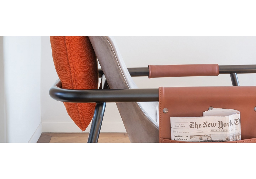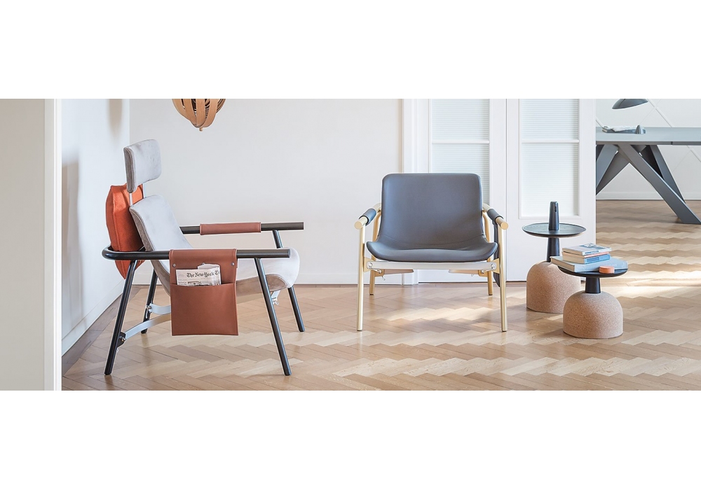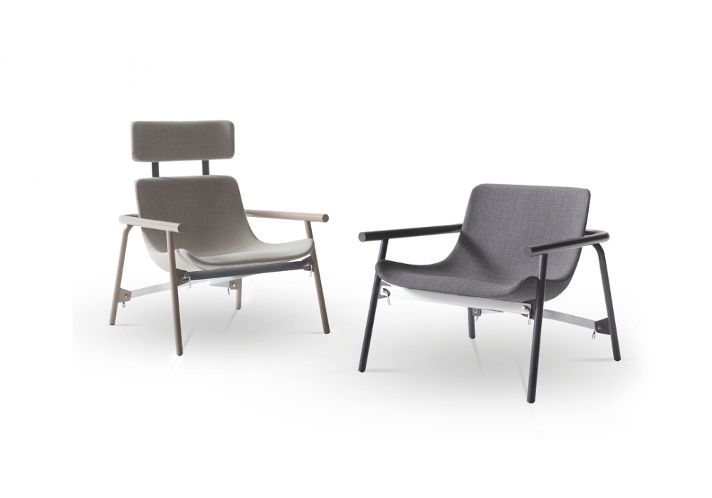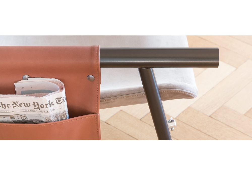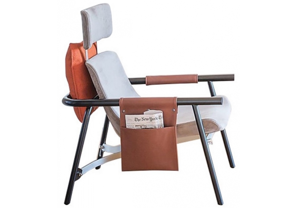 Eddy designed by Gino Carollo for Bonaldo is a relax armchair with steel structure available in different finishes. Upholstery in leather, eco-leather or fabric. Also available in 2 types: without headrest (Eddy) or with headrest (Eddy up). Leather accessories (armrest & magazine rack).