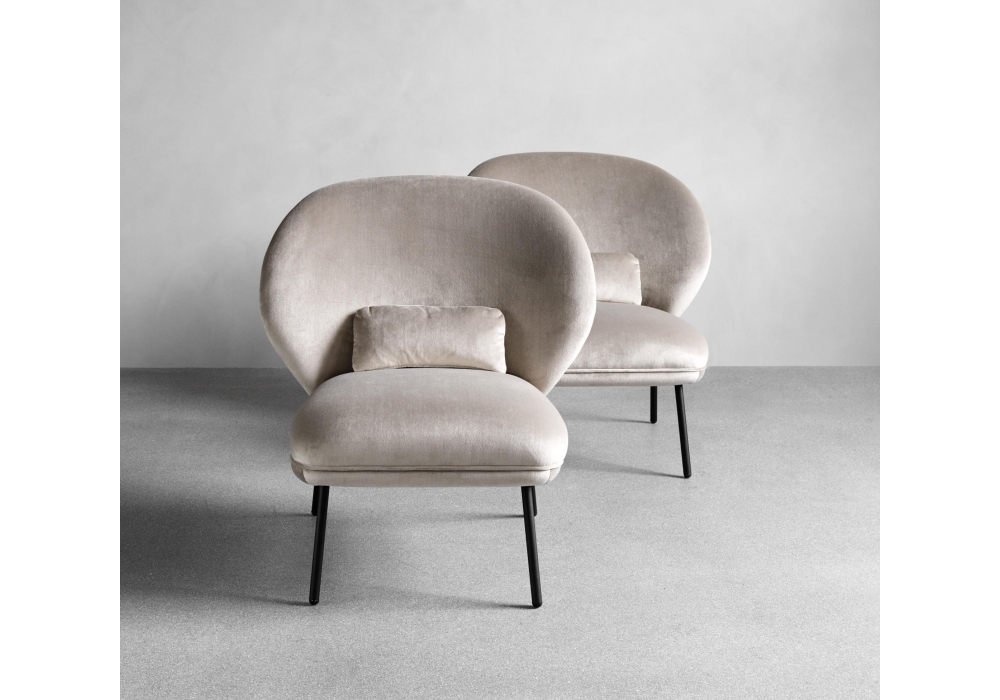 Ventall designed by Yonoh studio for wendelbo is a lounge chair with legs in black powder coated steel, seat and back padding in high resilience foam and upholstery in leather or fabric. Cushion not included.