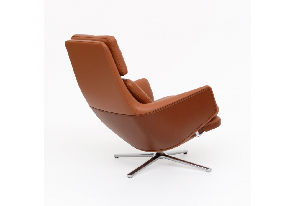 Grand Relax designed by Antonio Citterio for Vitra is a reclining armchair with swivel base with four spokes in die-cast aluminum, polished or powder-coated finish. The shell, the backrest and seat cushion are covered in leather.