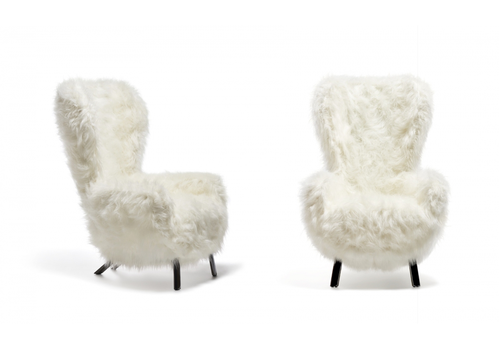 Guelfo Fur designed by Lapo Ciatti for Opinion Ciatti is a bergère made with black nickel structure and white faux fur covering.