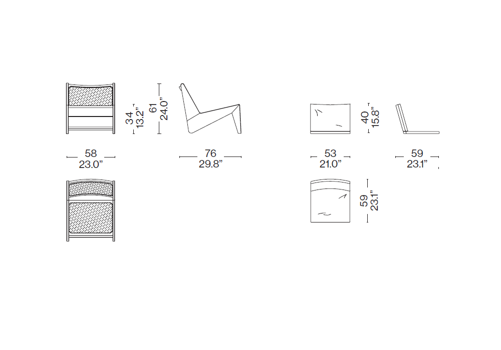 Kangaroo designed by CRS Cassina is an armchair with solid wood structure, available in different finishes and seat / back always in Vienna straw. It is possible to add a seat and back cushion set, joined by a zip covered in fabric or leather.
