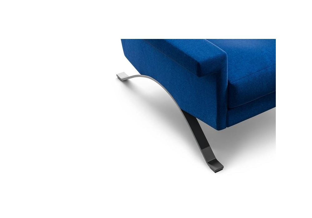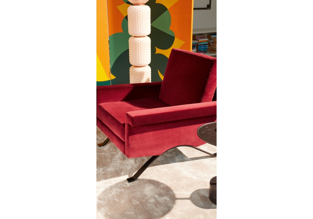 875 designed by Ico Parisi for Cassina is an armchair with base in curved metal, available in different finishes and upholstery in fabric or leather.