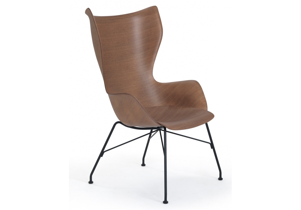 K/Wood designed by Philippe Starck for Kartell is an armchair with legs in chromed or black painted steel, seat in Basic veneer curved wood or slatted ash. Available in different finishes.