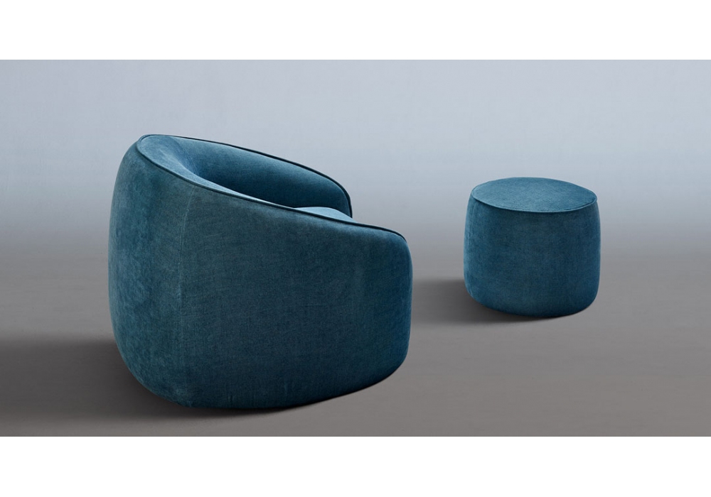 Baloo designed by Radice Orlandini for My Home Collection is an armchair made with wooden supporting structure covered in differentiated density polyurethane rubber and polyester fiber lining. The upholstery is in removable fabric and is available in different finishes.