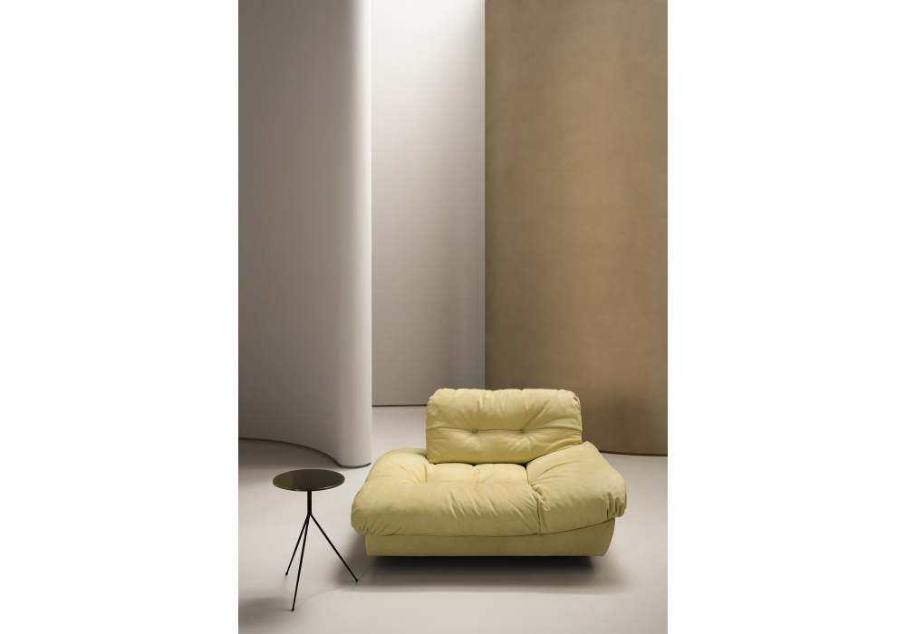 Milano designed by Paola Navone for Baxter is an armchair with structure in fir, decoration with leather in the same color and thread matching the decoration or white or red. Base in matt black painted tulipier wood.