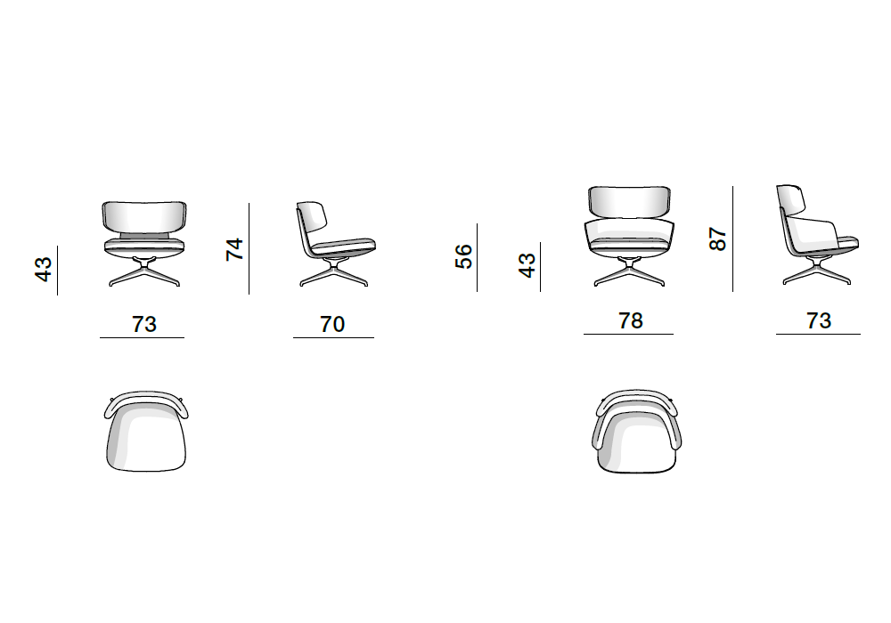 | Dimensions | 73 x 70 x H 74 cm; 78 x 73 x H 87 cm |