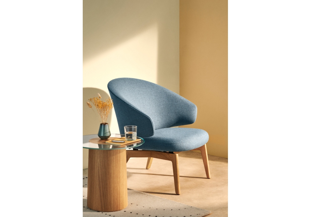 Let designed by Sebastian Herkner for Fritz Hansen is an armchair made with wooden or metal base and upholstery in leather or fabric. Available in different finishes.