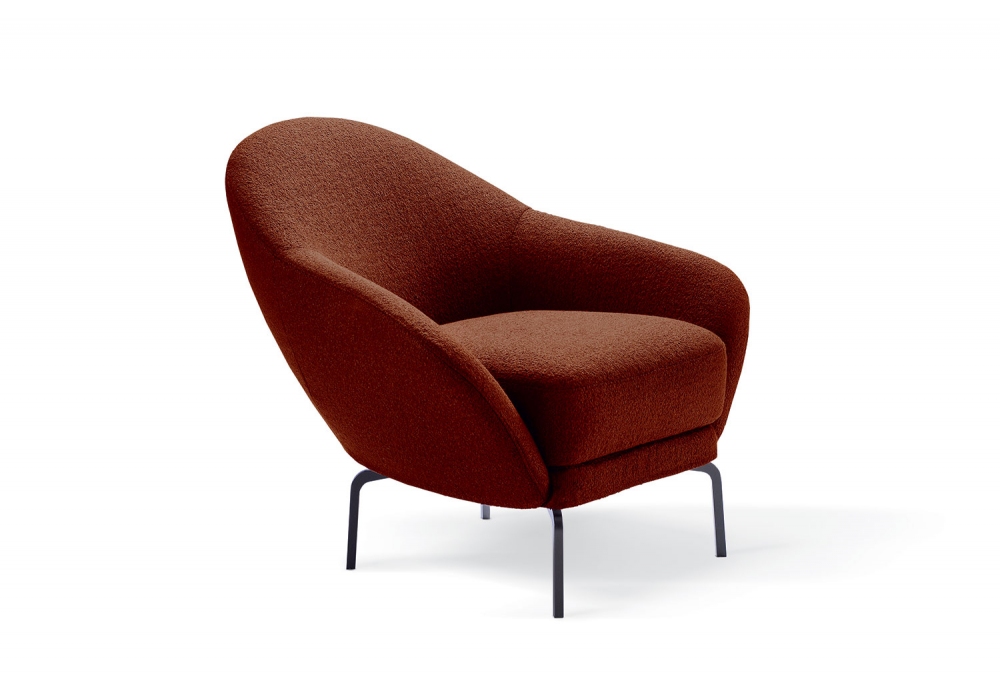 Giulia designed by Rita Consonni for Bodema is an armchair made with fabric, velvet or leather upholstery and grey lacquered metal feet. Available in different finishes.