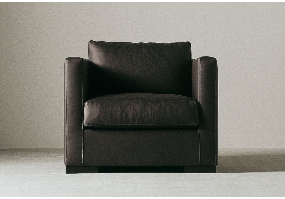 Belmon designed by Andrea Parisio for Meridiani is an armchair with wooden frame and non-deformable polyurethane padding. Upholstery available in fabric or leather. Wooden feet.