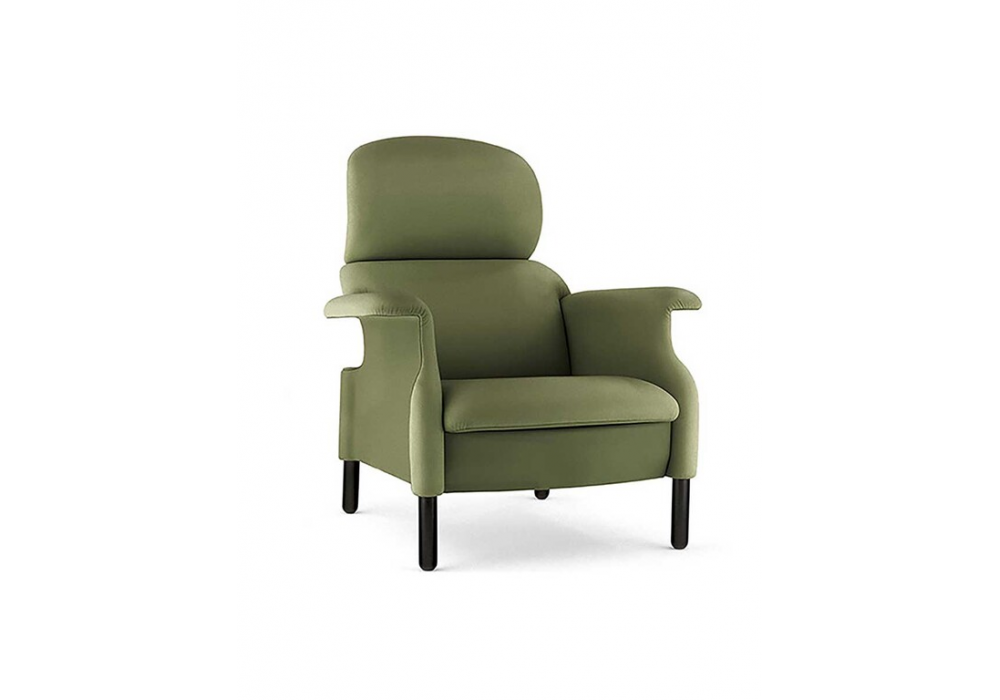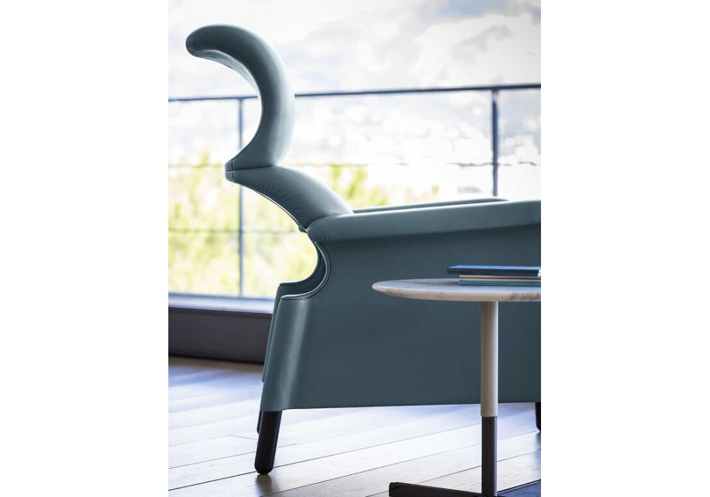 Sanluca designed by Achille & Pier Giacomo Castiglioni for Poltrona Frau is an armchair made with polyurethane foam padding from blocks of varying densities, solid wood feet and upholstery in Pelle Frau® leather or fabric.