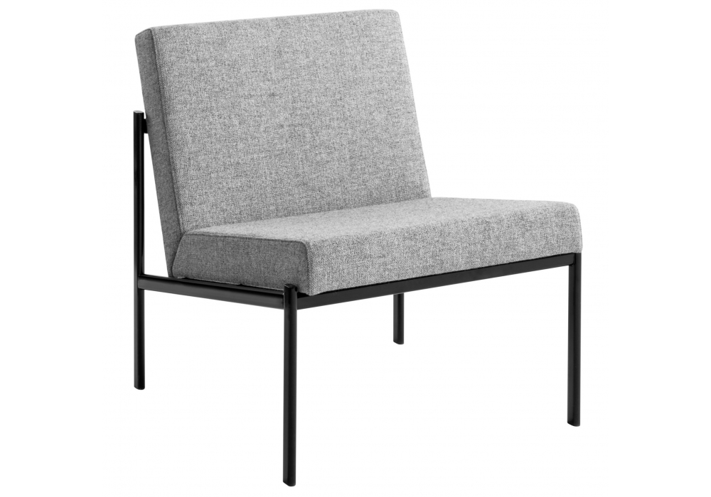 Kiki designed by Ilmari Tapiovaara for Artek is a lounge chair made with black gloss powder coated frame and fabric or leather upholstery. Available in different finishes.