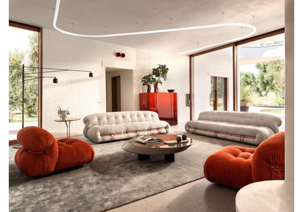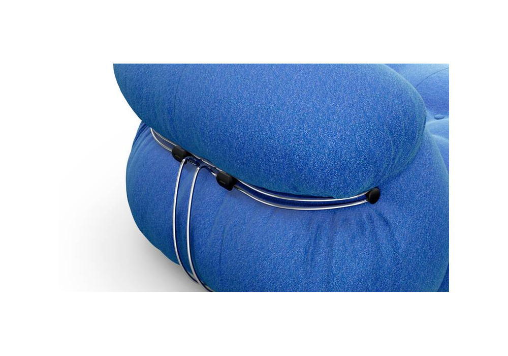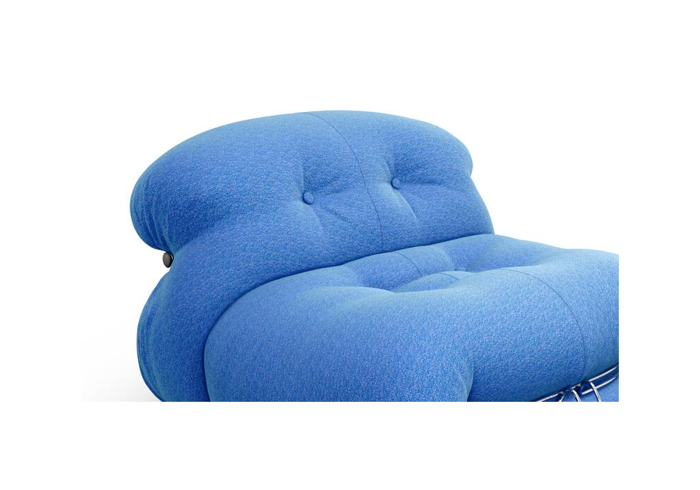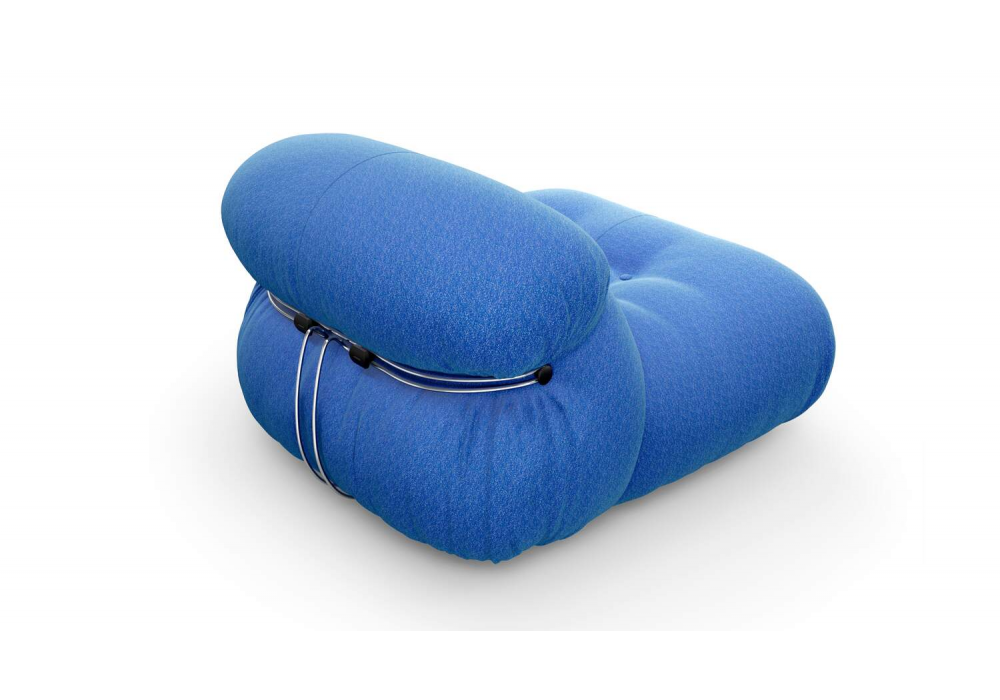 Soriana designed by Afra & Tobia Scarpa for Cassina is an armchair made with padding in 100% recycled PET or wadding. Structure in painted metal and upholstery in fabric or leather. Also available in the chaise longue version.