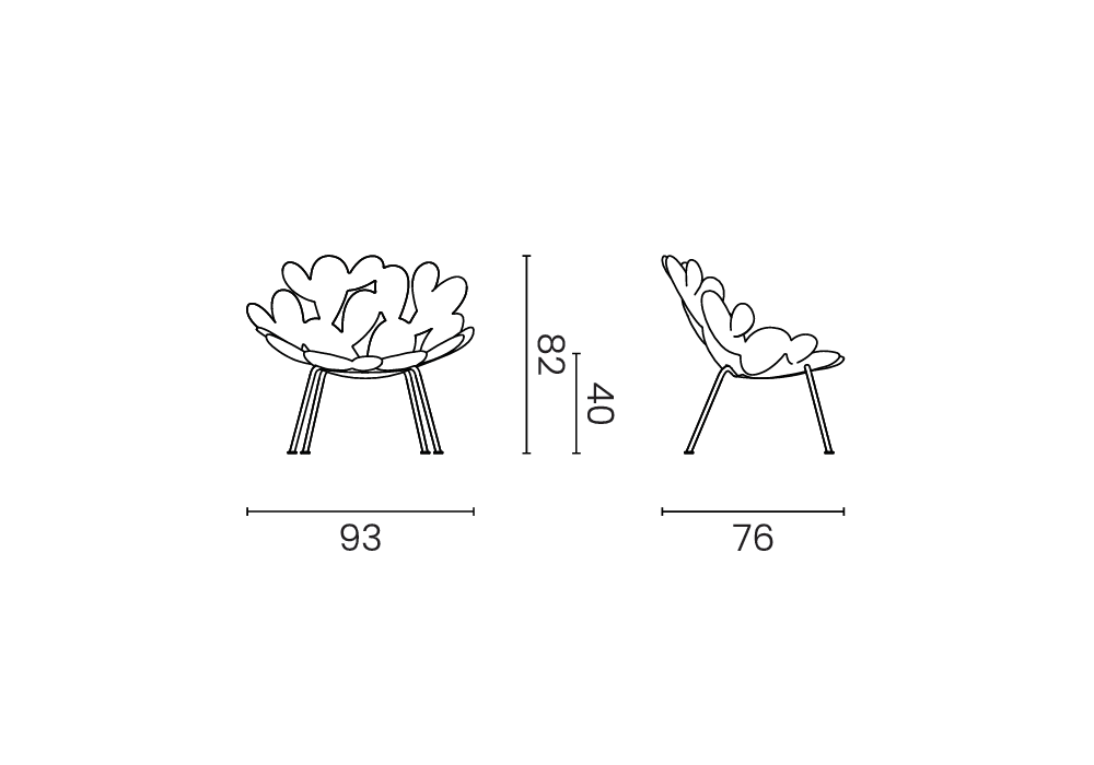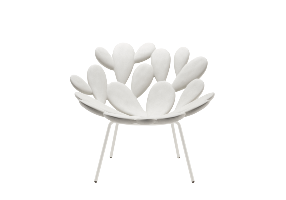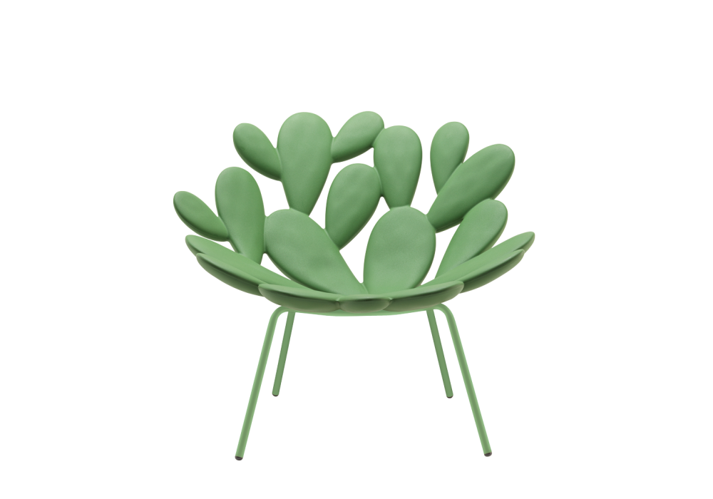 Filicudi designed by Marcantonio for Qeeboo is an armchair made with a polyethylene shell and powder-coated steel legs. Available in different finishes.