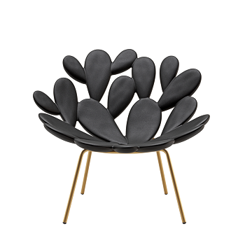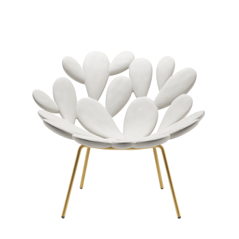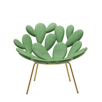 Filicudi designed by Marcantonio for Qeeboo is an armchair made with brass legs. Available in different finishes.