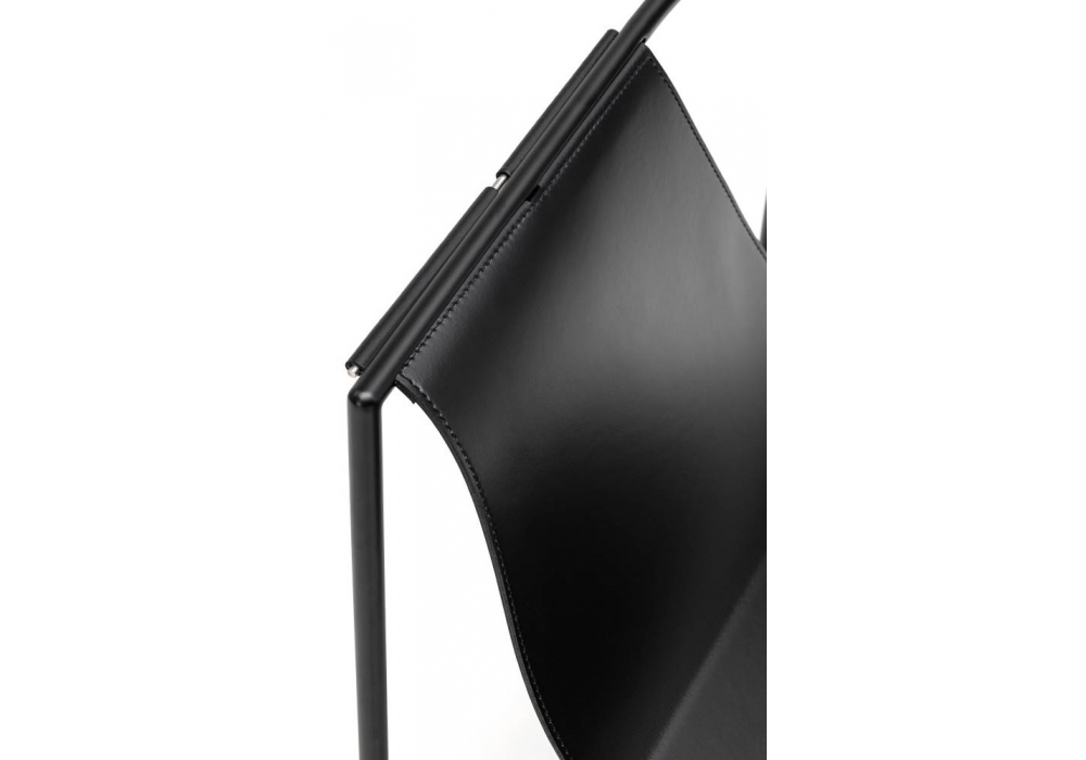 Lemni designed by Marco Lavit for Living Divani is an armchair with supporting structure in tubular steel Ø16 mm painted with epoxy powders in RAL-K7 finish, 9017 matt black. Seat and backrest roll cushion covered in hide leather or pelle Cuoietto.