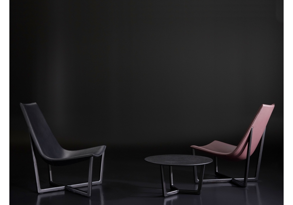 Jade designed by Christophe Pillet for Porro is an armchair composed of canaletto walnut or ash structure and leather or eco-leather upholstered shell. The Shahan table is ideal complementto the Jade armchair, recalls its finishes and crossed wood supporting structure.