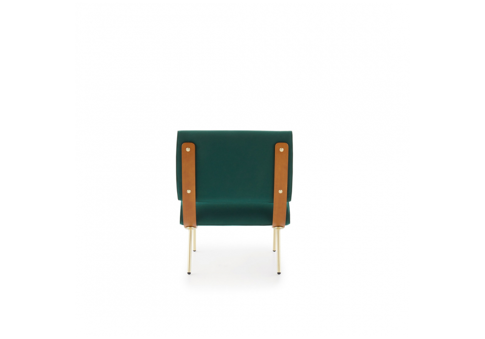 Round D.154.5 designed by Gio Ponti for Molteni&C is an iconic armchair with very modern even “spatial” shapes, never thought of before. The name derives from the rounded shape of the seat and backrests. It uses cutting-edge materials and technologies for its construction, such as the use of Vipla (plastic material imitating leather) for the upholstery, curved plywood to fix the backrest and seat together, and metal feet with easy anti-slip tip. assemblable. It is also defined, within the Ponti / Fornaroli / Rosselli study, "Eight Pieces". In fact, there are eight pieces that compose it: backrest, seat, two curved plywood elements and four legs, which screwing to the seat hold everything together.