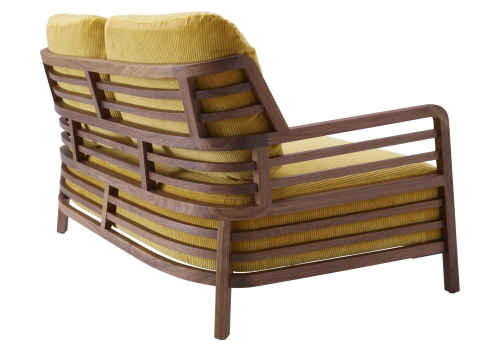 Flax designed by Philippe Nigro for Ligne Roset is a 2 seater sofa with structure and feet in solid American walnut. Seat cushion with inset steel springs and high resilience polyurethane Bultex foam. Back cushion with integral lumbar cushion filled with duck feathers and core in polyurethane foam. Upholstery available in different finishes.