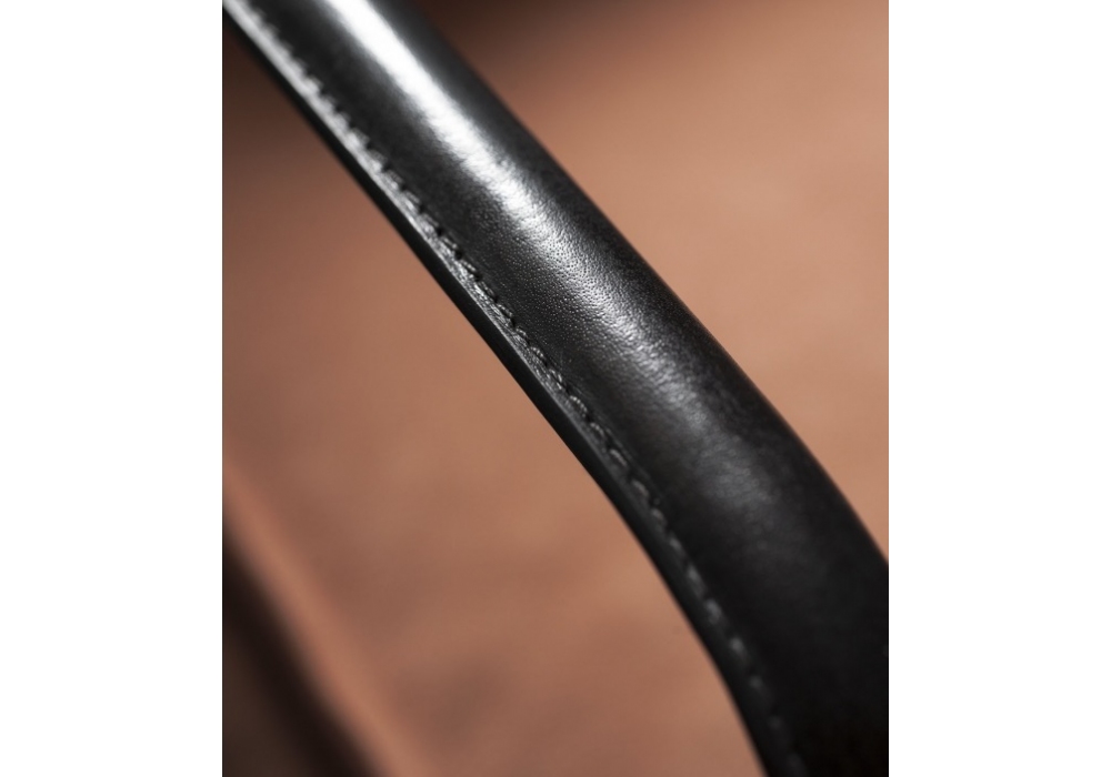 Bruxelles designed by Paola Navone for Baxter is an armchair with tubular metal frame covered with natural or anthracite leather. Seat and back cushions in differentiated density polyurethane foam. Springing with woven elastic straps of covered rubber. Poplar plywood inner structure. Leather upholstery with sharp edge stitching. Available in soft leathers, mouton, orange mongolia, white mongolia, blue mongolia, camel mongolia or green mongolia.