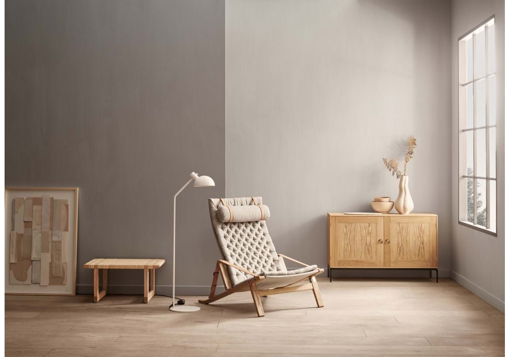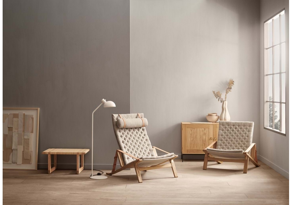 FK10/FK11 Plico Chair designed by Fabricius & Kastholm for Carl Hansen & Søn is a folding armchair with solid oak wood frame. Upholstery in natural canvas (100% linen), armrests and straps in natural leather. Available in two versions.