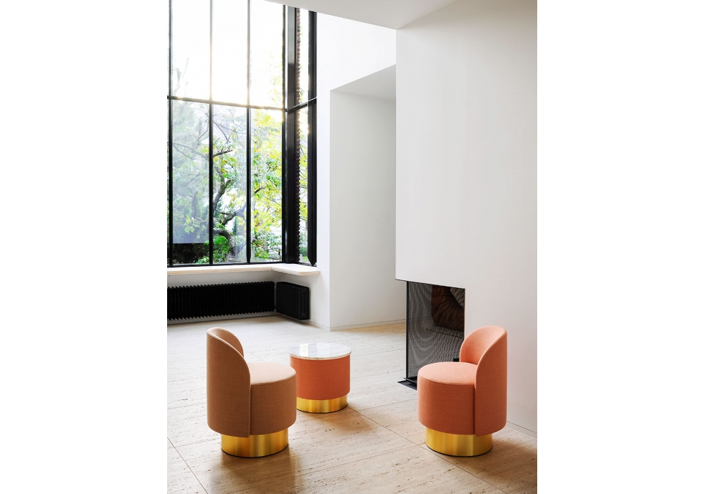 Pastilles designed by Studiopepe for Tacchini is an armchair with internal structure in poplar plywood, with padding in differentiated-density polyurethane foam. The upholstery is not removable and is available in different fabrics and colors. The base is in laminate, in three finishes.