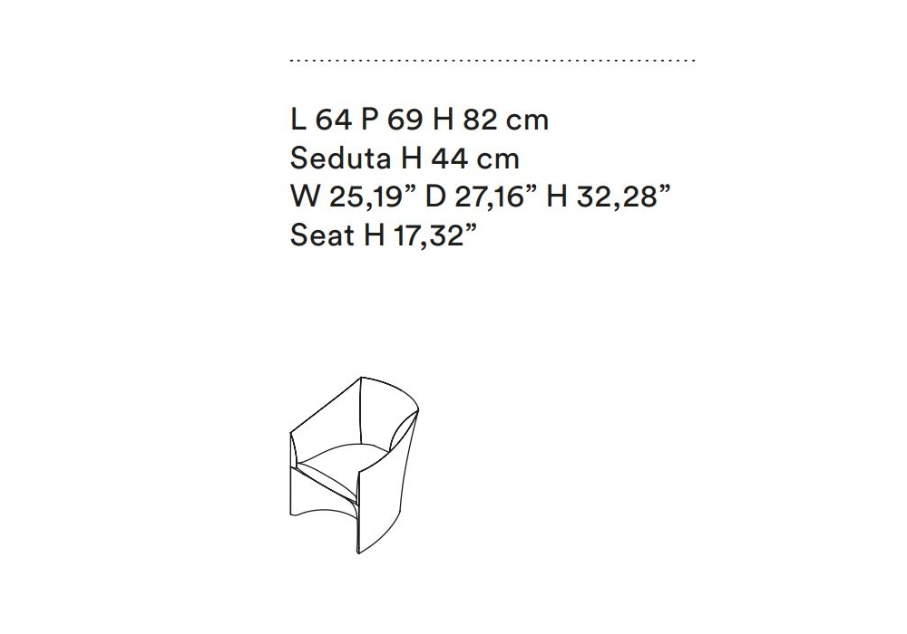 Mayfair designed by Christophe Pillet for Tacchini is an armchair with cold-foamed internal structure with metal inserts, seat padding in polyurethane foam. The non-removable upholstery is available in fabric or leather in different finishes.