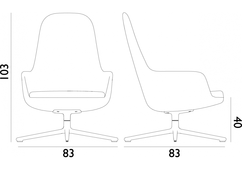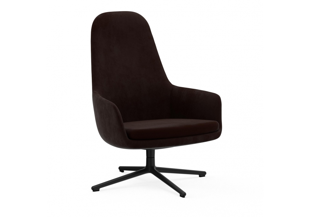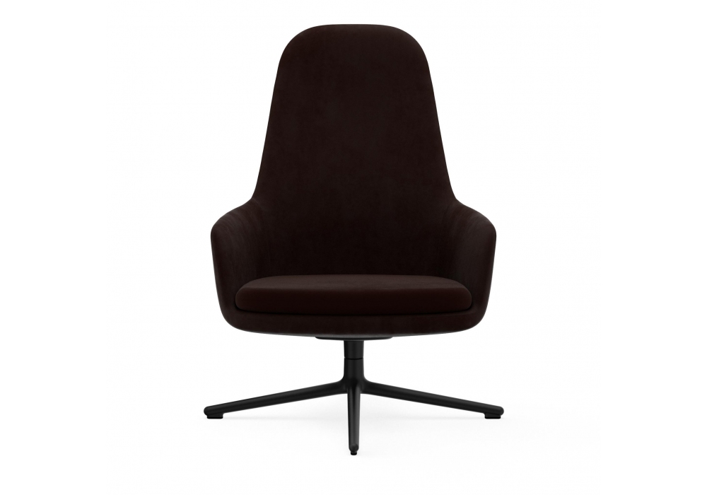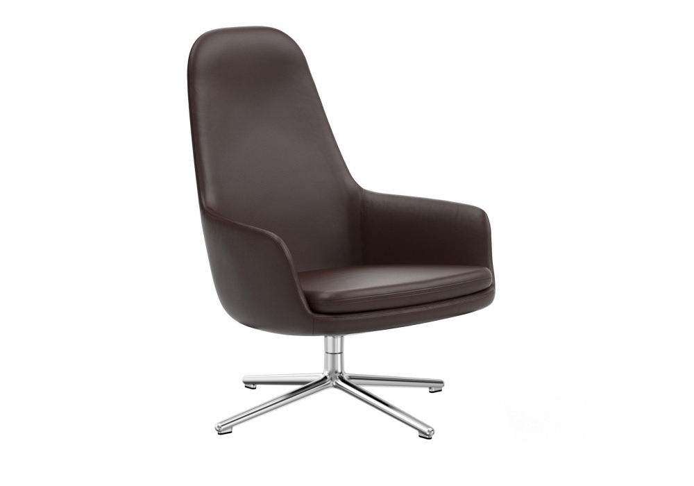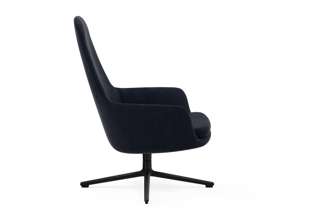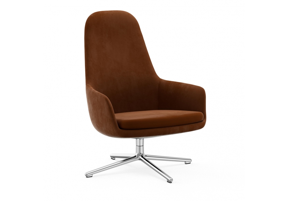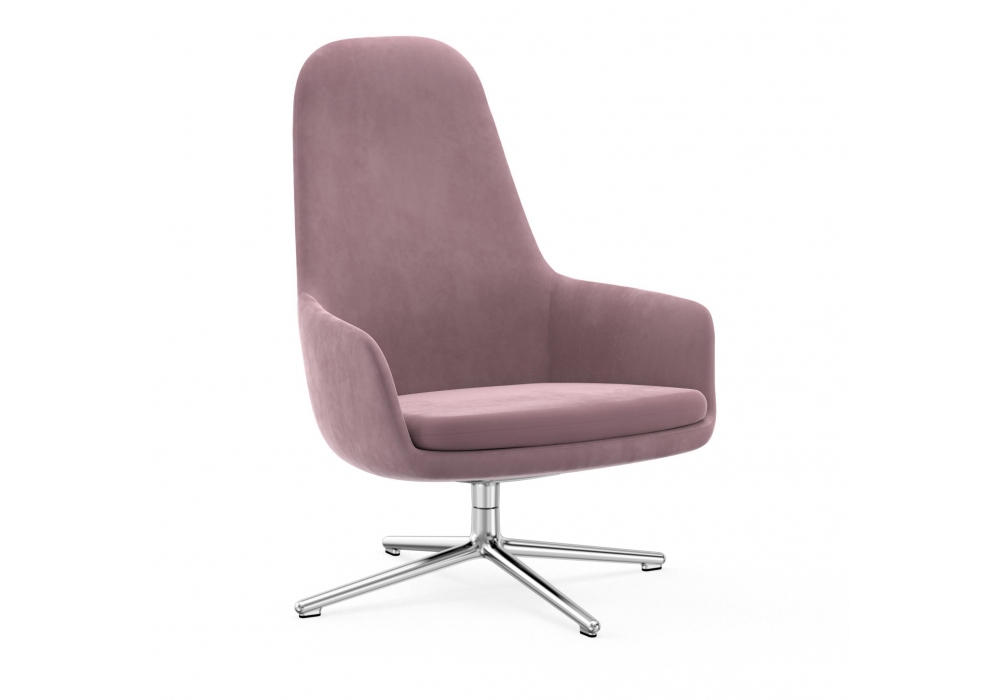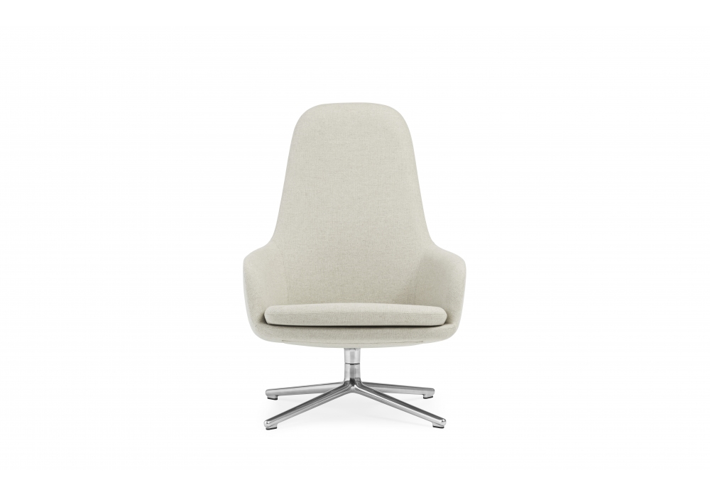 Era, designed by Simon Legald for Normann Copenhagen is an armchair, with swivel base in bare or powder-coated aluminum. Back, seat and armrests are in shaped polyurethane foam, covered in various types of fabric or leather. Era is available in different finishes.