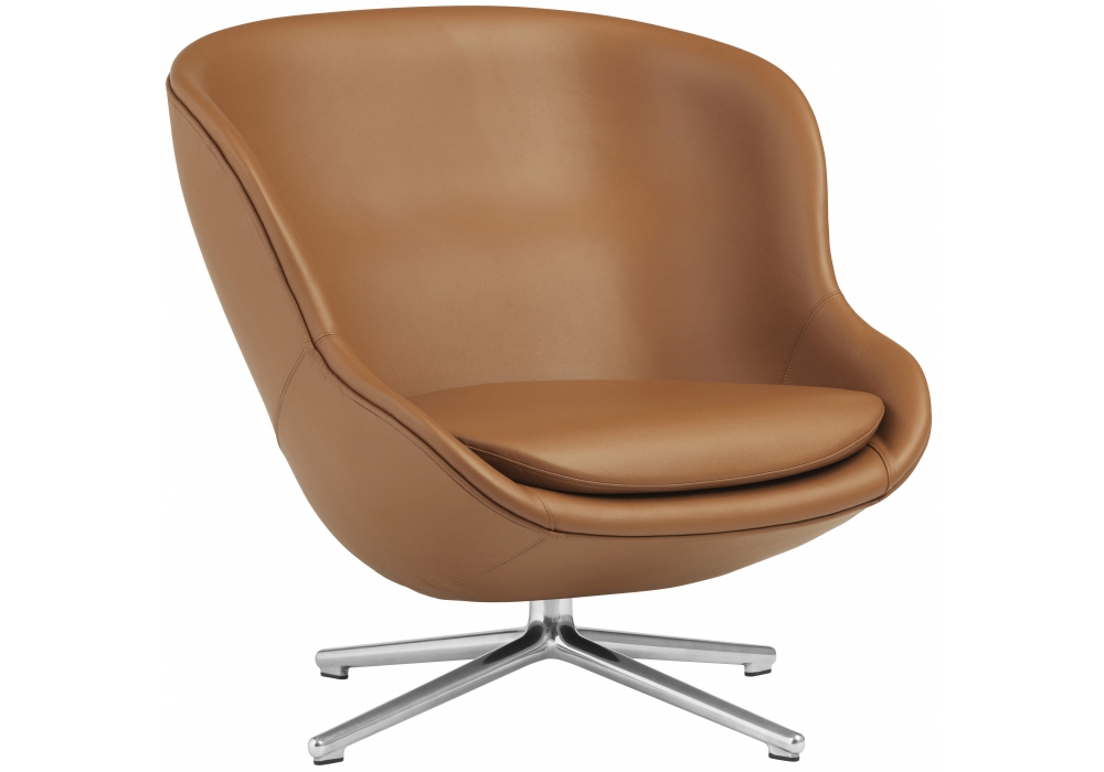 Hyg, designed by Simon Legald for Normann Copenhagen is an armchair with reinforced steel shell, padded with PU foam and covered in fabric or leather in different finishes. The legs are in four-spoke aluminum, in two colors, black or nude aluminum. Hyg is available in an inclined or standard version.