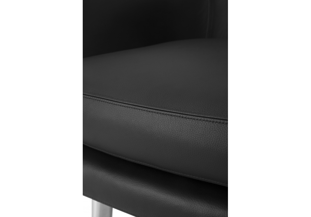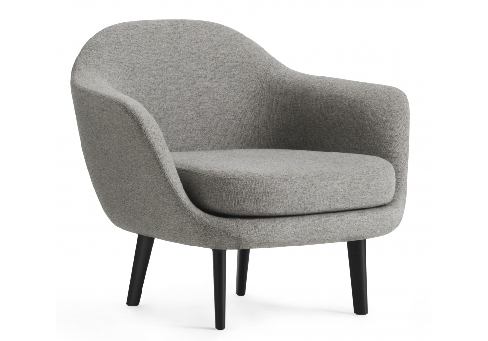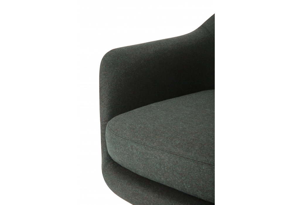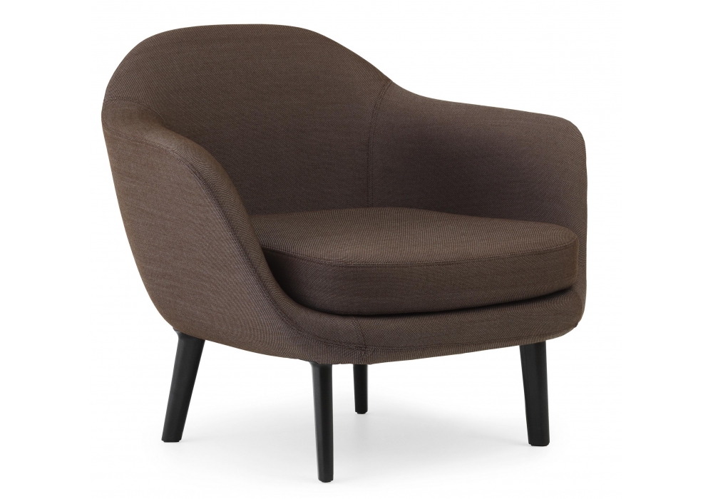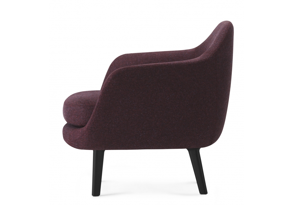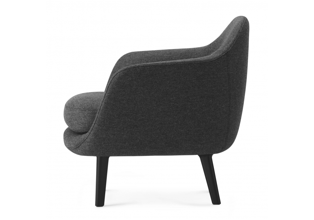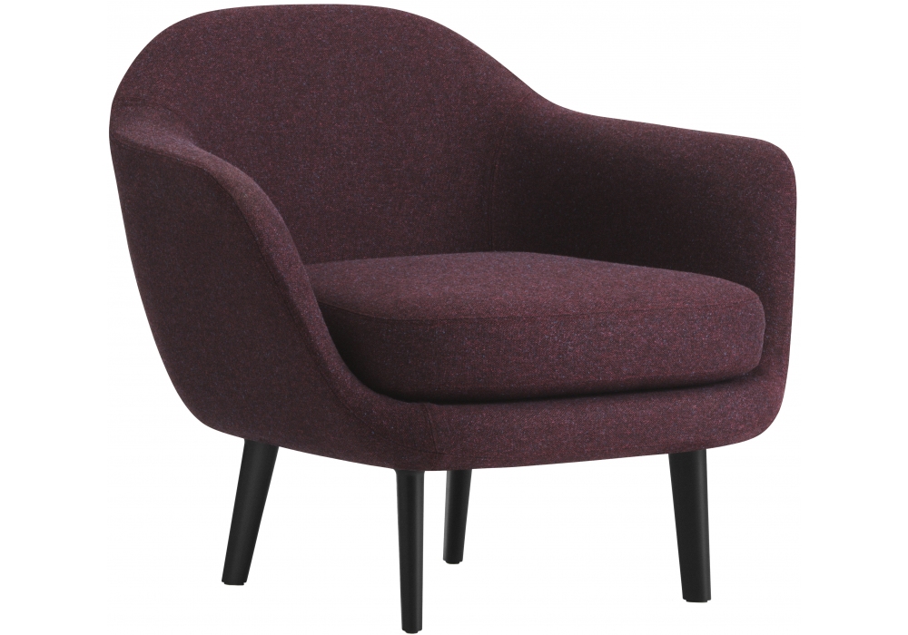 Sum, designed by Simon Legald for Normann Copenhagen is an armchair, with backrest and seat modeled in a single body, structured between the combination of wood and steel. Fully lined in fabric or leather available in different finishes. The legs are conical in black aluminum or bare silver aluminum.